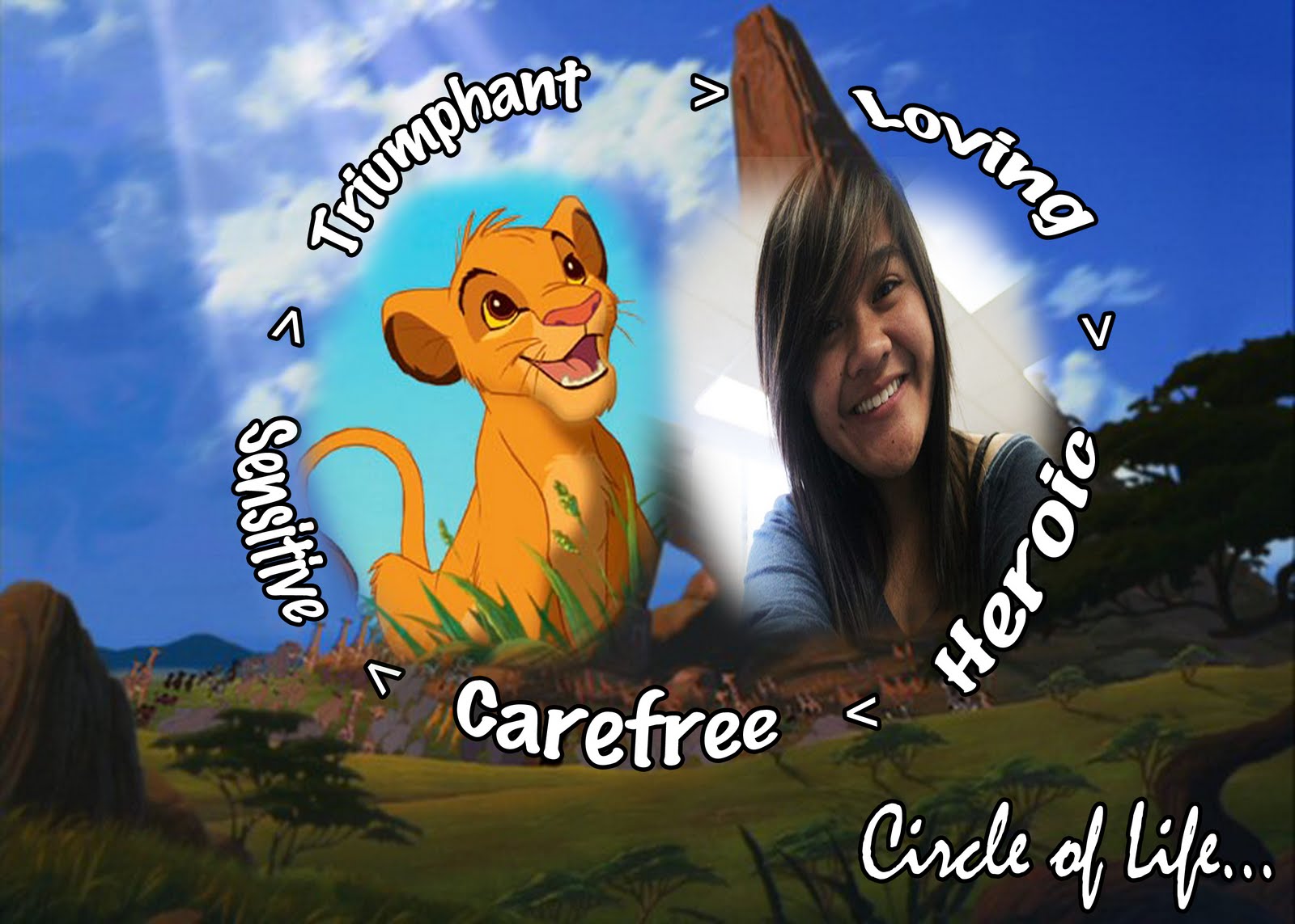 I decided to use Simba as the character for my Allusion because I grew up loving the movie Lion King and I would always watch it. I guess overtime, I kind of learned some life lessons through that movie, which is another reason why I chose Simba. While watching the movie, I applied some of the lessons in that movie to my life. I could really picture myself as Simba even when I was a little kid. In the movie, Simba is shown as a very playful and energetic lion who really does not want to take up any responsibilities. Although, as he gets older and wiser, he starts to realize that responsibilities are a big deal to him and for others, since he becomes the king after his father, Mufasa, passes away.